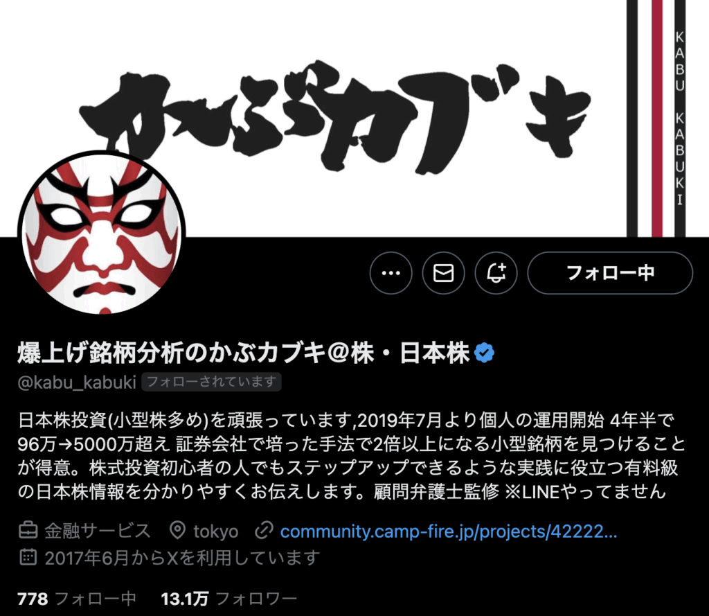 爆上げ銘柄分析のカブキ様(フォロワー13万人)X